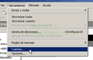 - Seleccione en el menú "Herramientas", el item "Cuentas..."