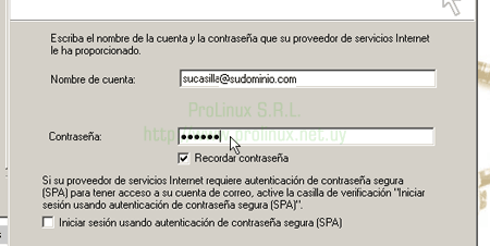 - En el cuado que sigue, deberá ingresar nuevamente el nombre completo de la cuenta y su contraseña